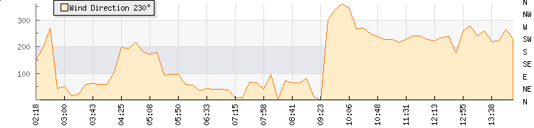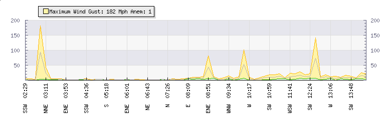 In the last few minutes the wind was South Westerly at an average speed of 7 mph, reaching up to 9 mph and a low of 5 mph. The gust strength is4 mph above the minimum speed |