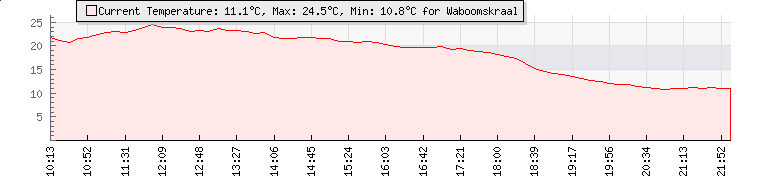 GPS Co-ordinates: | S 33º 52' 04, E 22º 22' 39 | ASL: | 1046 feet | Sunrise / Sunset: | 05:45 / 18:47 | Beaufort Scale: | Calm |