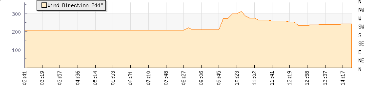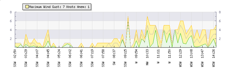 In the last few minutes the wind was West South West at an average speed of 5 knots, reaching up to 6 knots and a low of 3 knots. The gust strength is3 knots above the minimum speed |