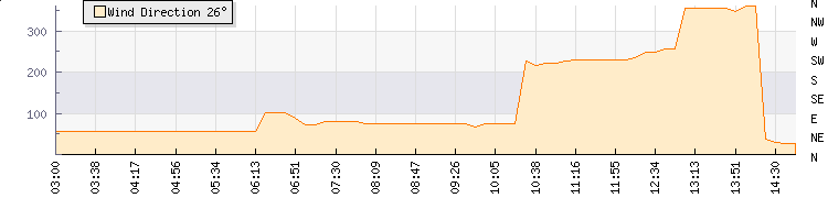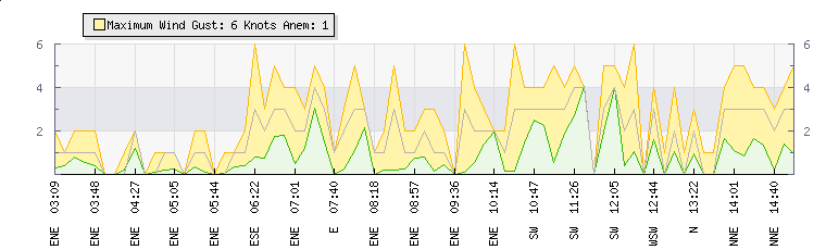 In the last few minutes the wind was Northerly at an average speed of 1 knots, reaching up to 1 knots and a low of 0 knots. The gust strength is1 knots above the minimum speed |
