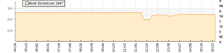 In the last few minutes the wind was West South West at an average speed of 2 mph, reaching up to 5 mph and a low of 0 mph. The gust strength is5 mph above the minimum speed |