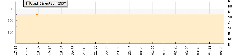 In the last few minutes the wind was West South West at an average speed of 1 mph, reaching up to 1 mph and a low of 0 mph. The gust strength is1 mph above the minimum speed |