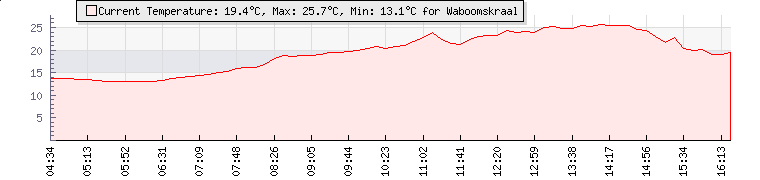 | GPS Co-ordinates: | S 33º 52' 04, E 22º 22' 39 | | ASL: | 1046 feet | | Sunrise / Sunset: | 06:03 / 19:27 | | Beaufort Scale: | Light Air |