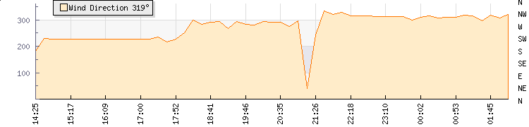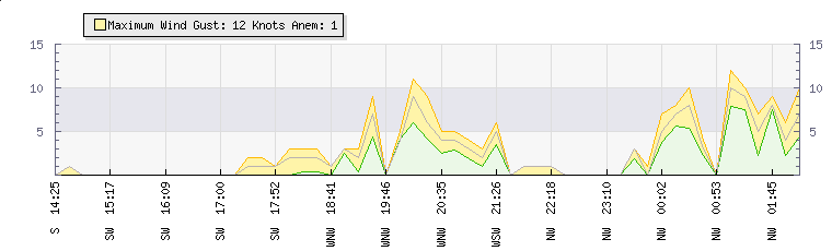 In the last few minutes the wind was North Westerly at an average speed of 3 knots, reaching up to 4 knots and a low of 2 knots. The gust strength is2 knots above the minimum speed |