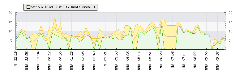 In the last few minutes the wind was North Westerly at an average speed of 8 knots, reaching up to 16 knots and a low of 0 knots. The gust strength is16 knots above the minimum speed |