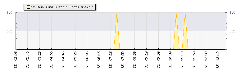 In the last few minutes the wind was South Easterly at an average speed of 0 knots, reaching up to 0 knots and a low of 0 knots. The gust strength is0 knots above the minimum speed |