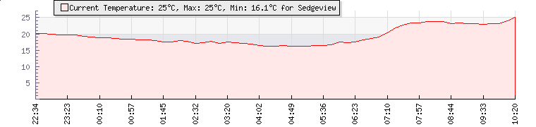 | Wind Gust: | 7 mph | Min Temp: | 16.1 °C | Max Temp: | 23.8 °C | | Wind Average: | 7 mph | Min Hum: | 79 % | Max Hum: | 94 % | |  |