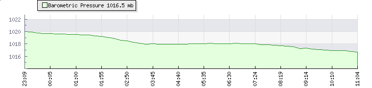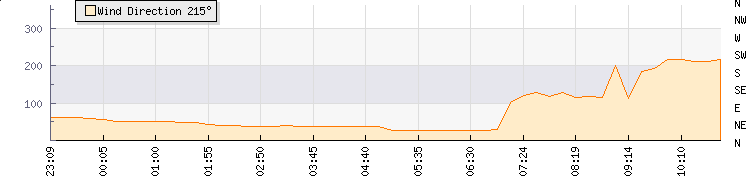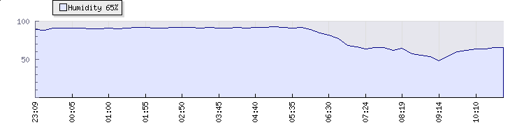 | Wind Gust: | 8 km/h | Min Temp: | 12.6 °C | Max Temp: | 24 °C | | Wind Average: | 5 km/h | Min Hum: | 48 % | Max Hum: | 92 % | |  |