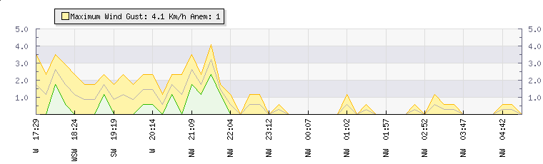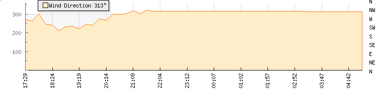 In the last few minutes the wind was North Westerly at an average speed of 0 kmh, reaching up to 0 kmh and a low of 0 kmh. The gust strength is0 kmh above the minimum speed |