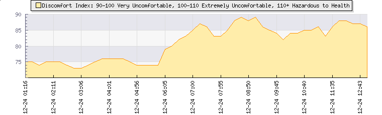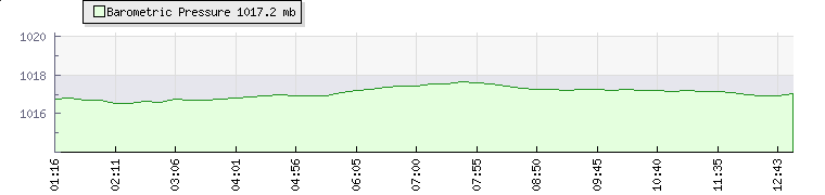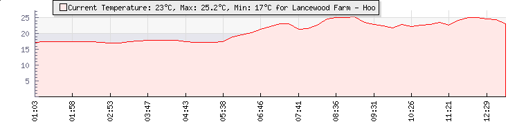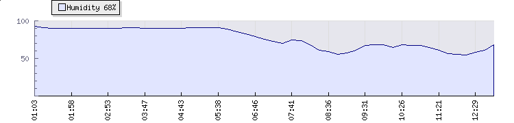 | Wind Gust: | 7 km/h | Min Temp: | 17 °C | Max Temp: | 25.2 °C | | Wind Average: | 4 km/h | Min Hum: | 56 % | Max Hum: | 93 % | |  |