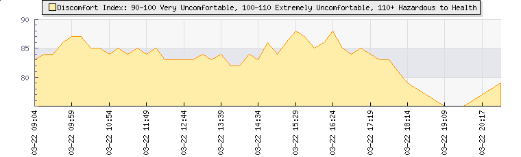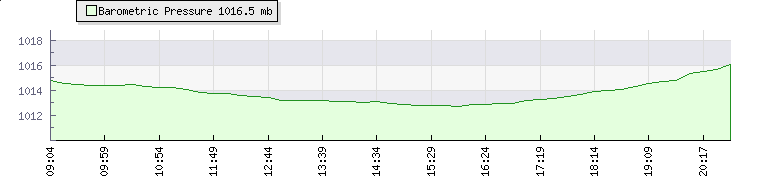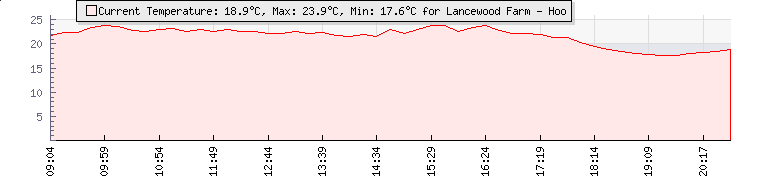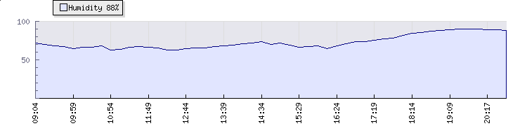 | Wind Gust: | 6 km/h | Min Temp: | 13.3 °C | Max Temp: | 23.9 °C | | Wind Average: | 4 km/h | Min Hum: | 63 % | Max Hum: | 93 % | |  |