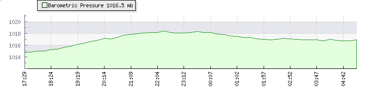 | Wind Speed: | 0|0|0 kmh | Wind Direction: | NW 313° | Temperature: | 22°C | | Wet Bulb: | 20.3°C | Discomfort: | 87 | Humidity: | 87% | | Rainfall Today: | 0mm | 12 hrs Rainfall: | 0mm | 24 hrs Rainfall: | 0mm | | Barometer: | 1016.5mb | Dew Point: | 19.7°C | Clouds AGL: | 907ft (276 m) | | Density-Alt: | 1877ft (572 m) | Fire Danger: | |