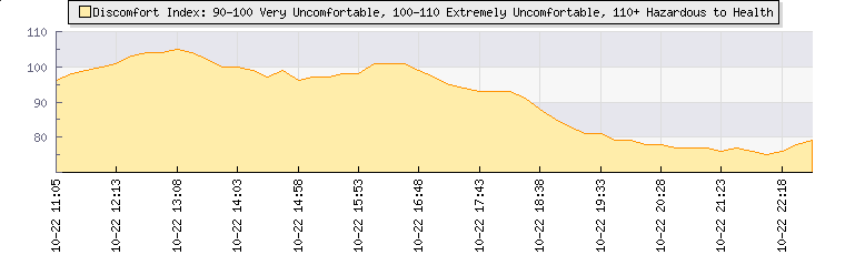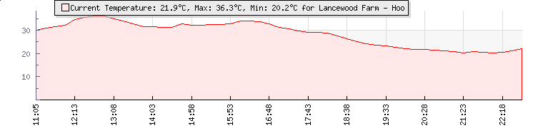 Wind Gust: | 7 knots | Min Temp: | 12.8 °C | Max Temp: | 36.3 °C | Wind Average: | 5 knots | Min Hum: | 20 % | Max Hum: | 95 % | |  |