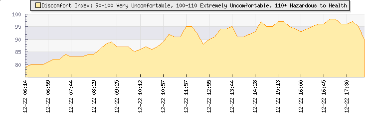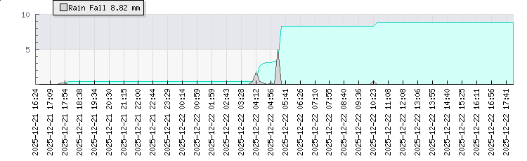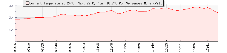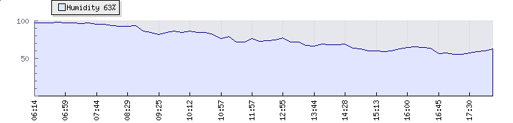 | Wind Gust: | 10 km/h | Min Temp: | 18.3 °C | Max Temp: | 28.3 °C | | Wind Average: | 5 km/h | Min Hum: | 59 % | Max Hum: | 98 % | |  |
