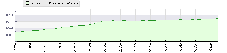 Wind Speed: | 0|4|8 kmh | Wind Direction: | NNW 329° | Temperature: | 19.1°C | Wet Bulb: | 13.8°C | Discomfort: | 73 | Humidity: | 57% | Rainfall Today: | 0mm | 12 hrs Rainfall: | 0mm | 24 hrs Rainfall: | 0mm | Barometer: | 1011.5mb | Dew Point: | 10.3°C | Clouds AGL: | 3488ft (1063 m) | Density-Alt: | 686ft (209 m) | Fire Danger: | |