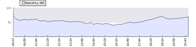 | Wind Gust: | 7 mph | Min Temp: | 17.1 °C | Max Temp: | 34.7 °C | | Wind Average: | 4 mph | Min Hum: | 40 % | Max Hum: | 98 % | |  |