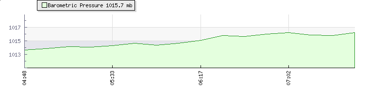 Wind Speed: | 0|1|2 mph | Wind Direction: | N 355° | Temperature: | 14.4°C | Wet Bulb: | 13.7°C | Discomfort: | 66 | Humidity: | 94% | Rainfall Today: | 2.5mm | 12 hrs Rainfall: | 2.5mm | 24 hrs Rainfall: | 19.3mm | Barometer: | 1015.7mb | Dew Point: | 13.5°C | Clouds AGL: | 382ft (116 m) | Density-Alt: | 36ft (11 m) | Fire Danger: | |