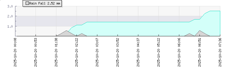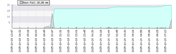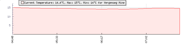 Wind Gust: | 4 mph | Min Temp: | 14 °C | Max Temp: | 16 °C | Wind Average: | 2 mph | Min Hum: | 92 % | Max Hum: | 99 % | |  |