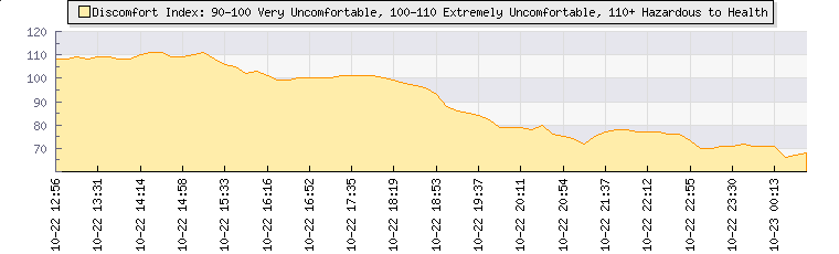 Wind Speed: | 0|4|7 kmh | Wind Direction: | ENE 61° | Temperature: | 21.6°C | Wet Bulb: | 15.2°C | Discomfort: | 78 | Humidity: | 51% | Rainfall Today: | 0mm | 12 hrs Rainfall: | 0mm | 24 hrs Rainfall: | 0mm | Barometer: | 1002.7mb | Dew Point: | 11°C | Clouds AGL: | 4231ft (1290 m) | Density-Alt: | 1585ft (483 m) | Fire Danger: | |