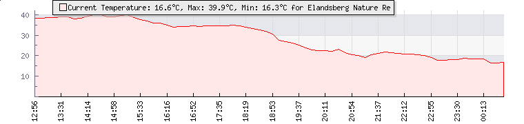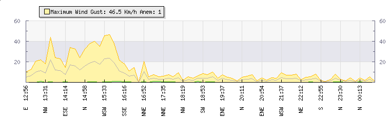 Wind Gust: | 58 km/h | Min Temp: | 15.7 °C | Max Temp: | 39.9 °C | Wind Average: | 29 km/h | Min Hum: | 17 % | Max Hum: | 70 % | |  |