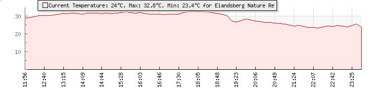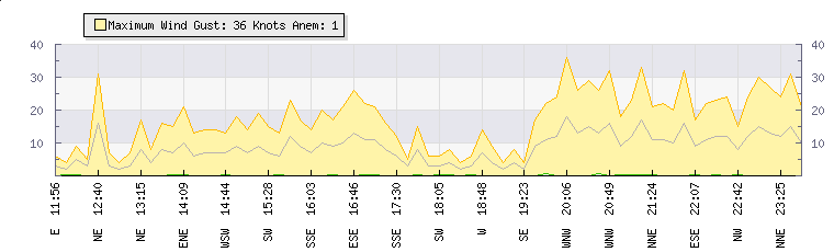 | Wind Gust: | 36 knots | Min Temp: | 11.2 °C | Max Temp: | 32.8 °C | | Wind Average: | 18 knots | Min Hum: | 25 % | Max Hum: | 80 % | |  |