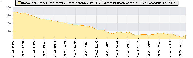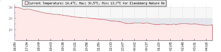 | Wind Gust: | 4 mph | Min Temp: | 14.3 °C | Max Temp: | 15.9 °C | | Wind Average: | 2 mph | Min Hum: | 81 % | Max Hum: | 86 % | |  |