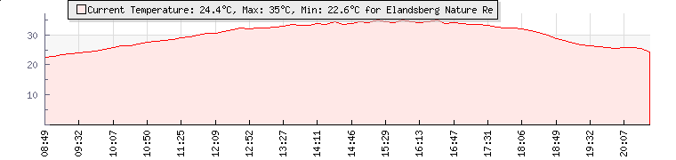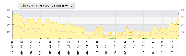 | Wind Gust: | 38 mph | Min Temp: | 17.7 °C | Max Temp: | 35 °C | | Wind Average: | 19 mph | Min Hum: | 18 % | Max Hum: | 59 % | |  |