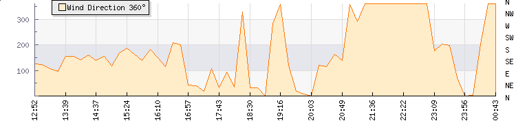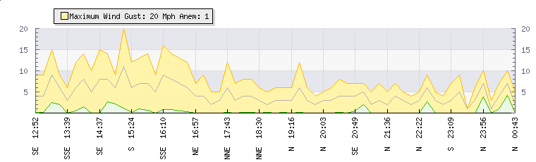 In the last few minutes the wind was South South West at an average speed of 5 mph, reaching up to 9 mph and a low of 0 mph. The gust strength is9 mph above the minimum speed |