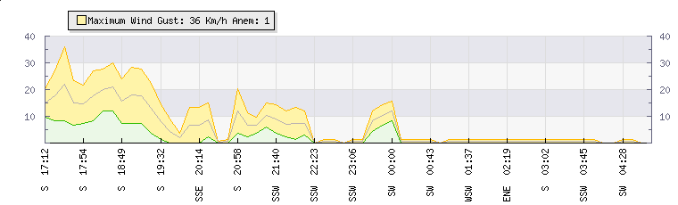 In the last few minutes the wind was South South West at an average speed of 1 kmh, reaching up to 2 kmh and a low of 0 kmh. The gust strength is2 kmh above the minimum speed |
