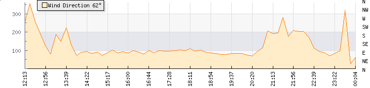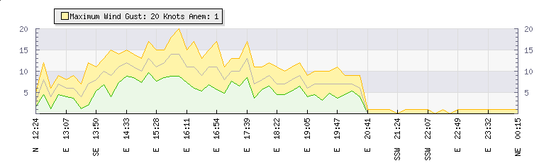In the last few minutes the wind was Southerly at an average speed of 1 knots, reaching up to 1 knots and a low of 0 knots. The gust strength is1 knots above the minimum speed |