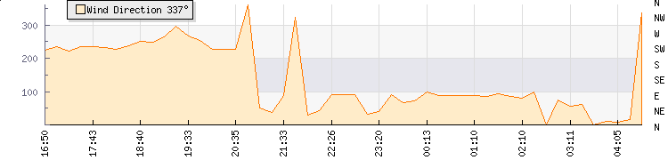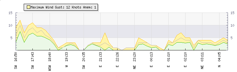 In the last few minutes the wind was East North East at an average speed of 4 knots, reaching up to 4 knots and a low of 3 knots. The gust strength is1 knots above the minimum speed |