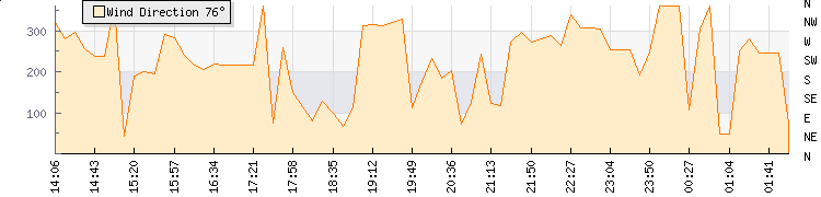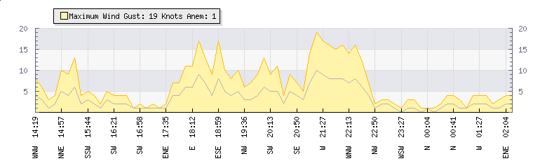 In the last few minutes the wind was South Westerly at an average speed of 1 knots, reaching up to 2 knots and a low of 0 knots. The gust strength is2 knots above the minimum speed |