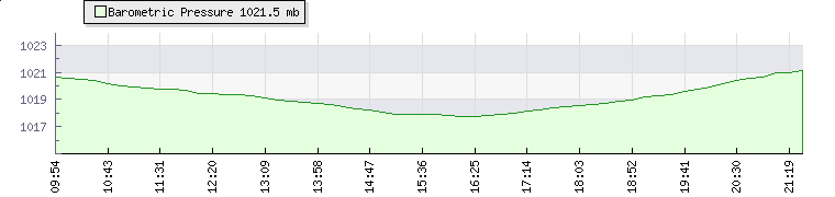 In the last few minutes the wind was South South West at an average speed of 5 mph, reaching up to 8 mph and a low of 1 mph. The gust strength is7 mph above the minimum speed |