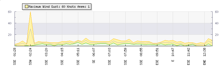 In the last few minutes the wind was East South East at an average speed of 5 knots, reaching up to 8 knots and a low of 3 knots. The gust strength is5 knots above the minimum speed |
