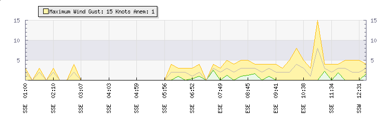 In the last few minutes the wind was Easterly at an average speed of 8 knots, reaching up to 15 knots and a low of 0 knots. The gust strength is15 knots above the minimum speed |