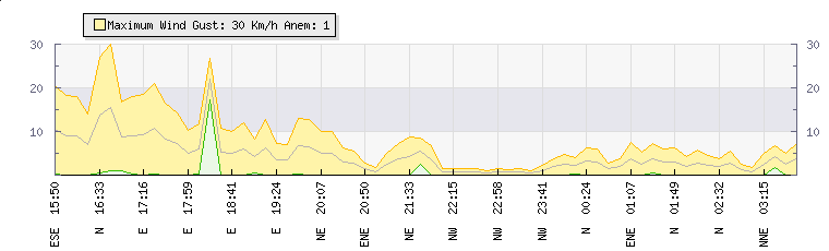 In the last few minutes the wind was Northerly at an average speed of 3 kmh, reaching up to 6 kmh and a low of 0 kmh. The gust strength is6 kmh above the minimum speed |