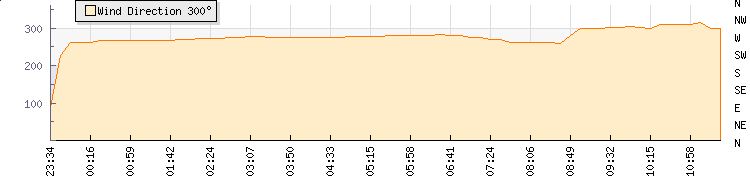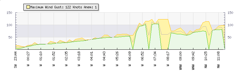 In the last few minutes the wind was West North West at an average speed of 78 knots, reaching up to 83 knots and a low of 73 knots. The gust strength is10 knots above the minimum speed |
