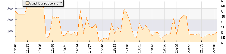 In the last few minutes the wind was East North East at an average speed of 3 mph, reaching up to 4 mph and a low of 1 mph. The gust strength is3 mph above the minimum speed |
