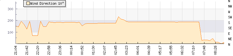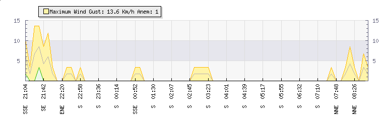 In the last few minutes the wind was Southerly at an average speed of 0 kmh, reaching up to 0 kmh and a low of 0 kmh. The gust strength is0 kmh above the minimum speed |