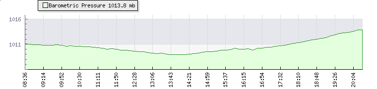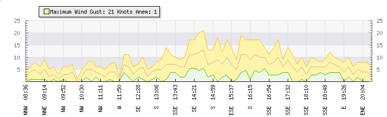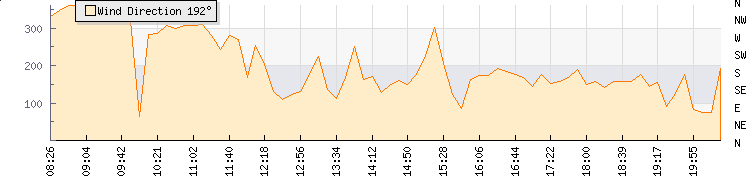 In the last few minutes the wind was South Westerly at an average speed of 8 knots, reaching up to 16 knots and a low of 1 knots. The gust strength is15 knots above the minimum speed |