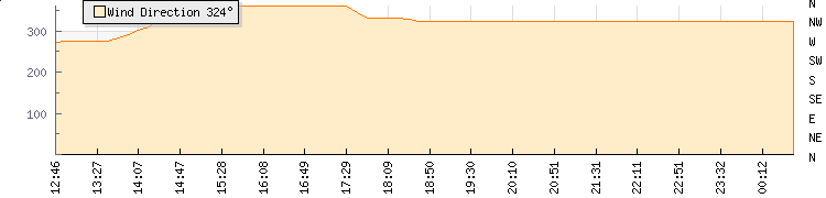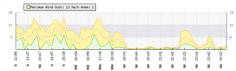 In the last few minutes the wind was Westerly at an average speed of 4 kmh, reaching up to 7 kmh and a low of 2 kmh. The gust strength is5 kmh above the minimum speed |