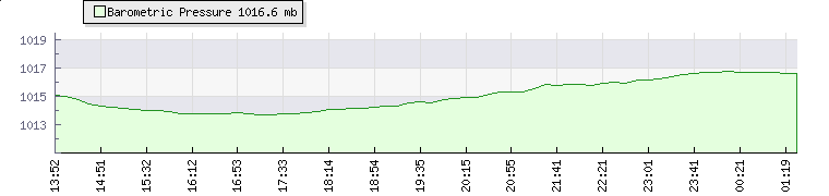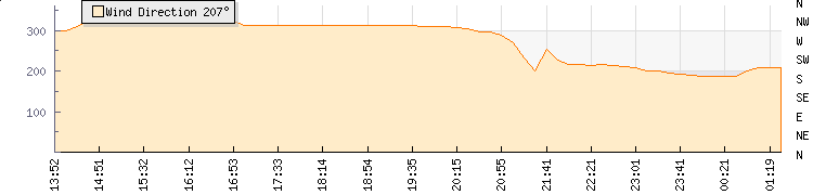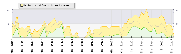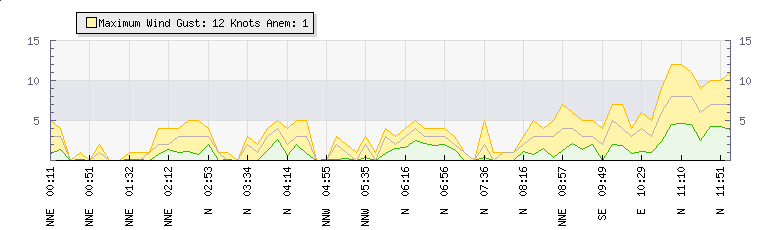 In the last few minutes the wind was Northerly at an average speed of 1 knots, reaching up to 1 knots and a low of 0 knots. The gust strength is1 knots above the minimum speed |