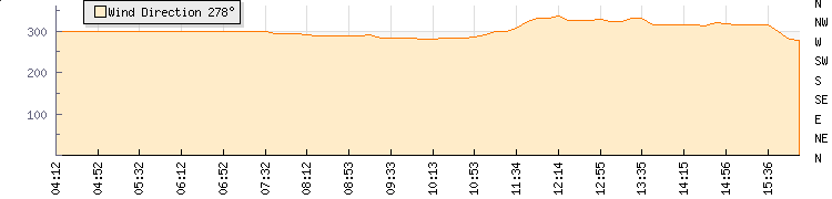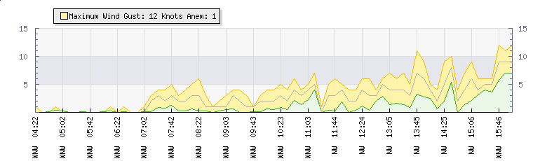 In the last few minutes the wind was North Westerly at an average speed of 8 knots, reaching up to 10 knots and a low of 5 knots. The gust strength is5 knots above the minimum speed |