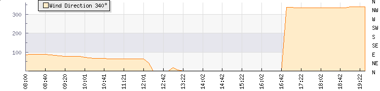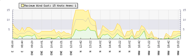 In the last few minutes the wind was North North West at an average speed of 0 knots, reaching up to 0 knots and a low of 0 knots. The gust strength is0 knots above the minimum speed |