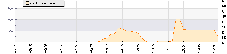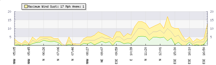 In the last few minutes the wind was Northerly at an average speed of 3 mph, reaching up to 6 mph and a low of 0 mph. The gust strength is6 mph above the minimum speed |