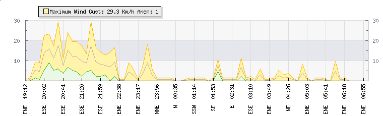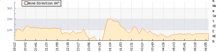 In the last few minutes the wind was North Easterly at an average speed of 1 kmh, reaching up to 2 kmh and a low of 0 kmh. The gust strength is2 kmh above the minimum speed |