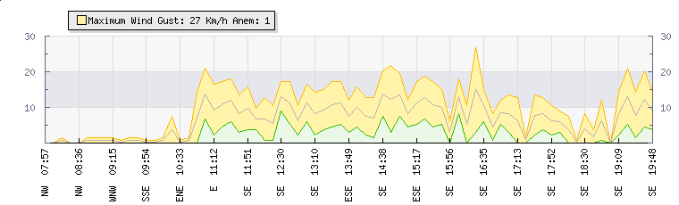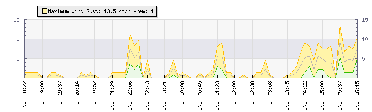 In the last few minutes the wind was North Westerly at an average speed of 1 kmh, reaching up to 2 kmh and a low of 0 kmh. The gust strength is2 kmh above the minimum speed |