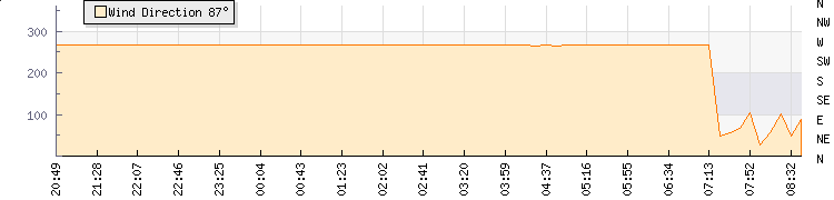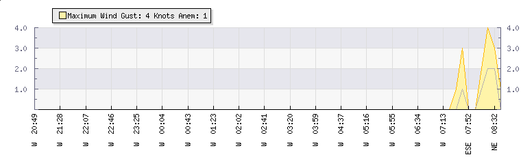 In the last few minutes the wind was East South East at an average speed of 2 knots, reaching up to 4 knots and a low of 0 knots. The gust strength is4 knots above the minimum speed |
