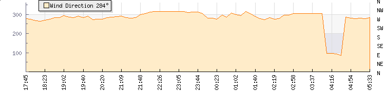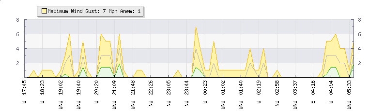 In the last few minutes the wind was North Westerly at an average speed of 1 mph, reaching up to 1 mph and a low of 0 mph. The gust strength is1 mph above the minimum speed |
