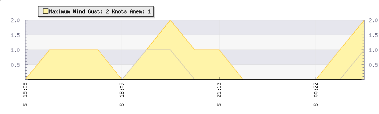 In the last few minutes the wind was Southerly at an average speed of 0 knots, reaching up to 0 knots and a low of 0 knots. The gust strength is0 knots above the minimum speed |